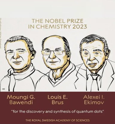 在當今的材料應用領域中,納米科學技術發(fā)展中的多個里程碑式工作也來自于量子點相關研究。量子點(Quantum dots, QDs)已經成為備受矚目的技術革命之一。2023年10月4日,瑞典皇家科學院宣布,美國麻省理工學院的蒙吉·巴文迪(Moungi G. Bawendi)、美國納米晶體科技公司的阿列克謝·?;颍ˋlexei I. Ekimov)和美國哥倫比亞大學的路易斯·布魯斯(Louis E. Brus)榮膺2023年諾貝爾化學獎,表彰他們 “發(fā)現和合成量子點”的科學貢獻。