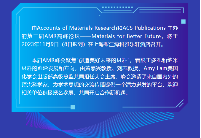 2023年11月9日,由Accounts of Materials Research和ACS Publications 主辦的第三屆AMR高峰論壇——Materials for Better Future在上海召開。
